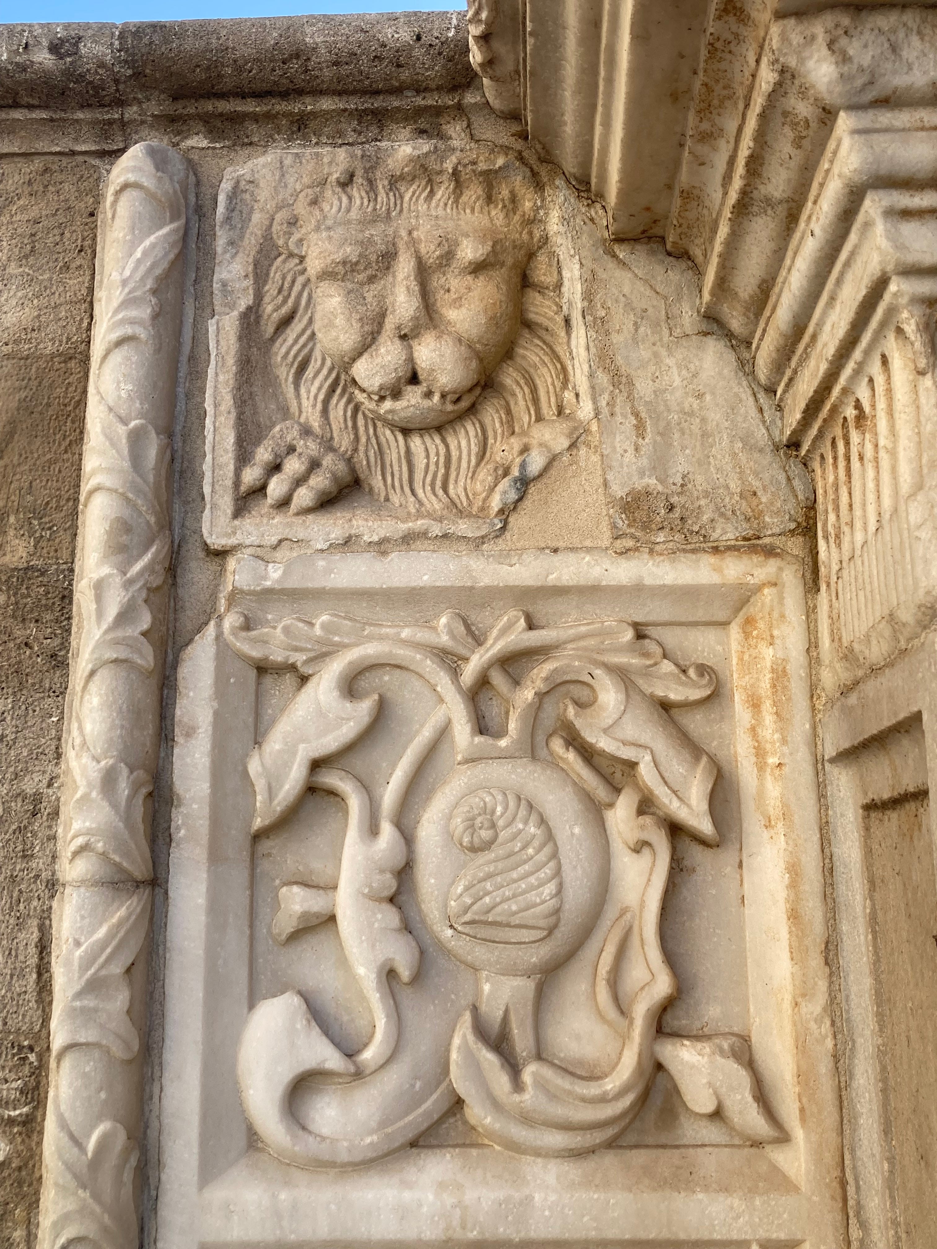 The Morosini or ‘Lions’ Fountain is at the beating heart of the old of the city, the square it’s in heaving (I’m told) at more touristy or warmer times of year, and lined with shiny shops and restaurants. It’s named for Francesco Morosini, the Venetian governor, who had it installed to supply fresh water from an aqueduct in 1628. The fountain’s chequered history reflects that of the city: a statue of the sea god Poseidon which was originally its centre-piece was destroyed by the Turks (or possibly by an earthquake), who also transformed the design and removed much of the original decoration. After the end of Ottoman rule, in 1900, it was quasi-restored to its former state.