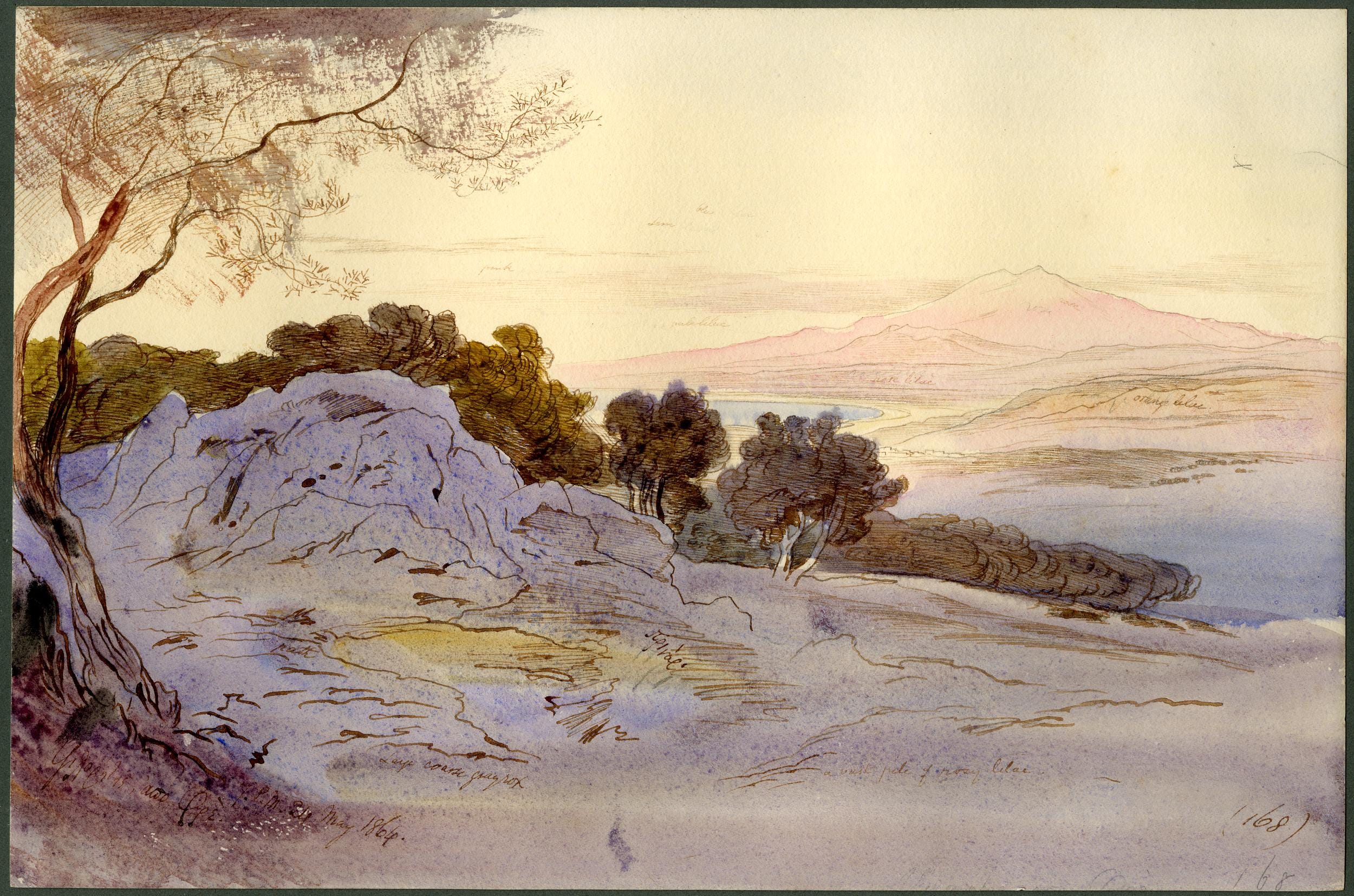 Edward Lear, Distant view of Mount Ida (Psiloriti) from Fre, Crete, 1864