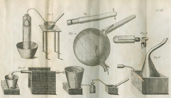 Equipment for the ‘Experiments and Observations on Air’ by Joseph Priestley, discoverer of ‘dephlogisticated air’ (oxygen) in 1774